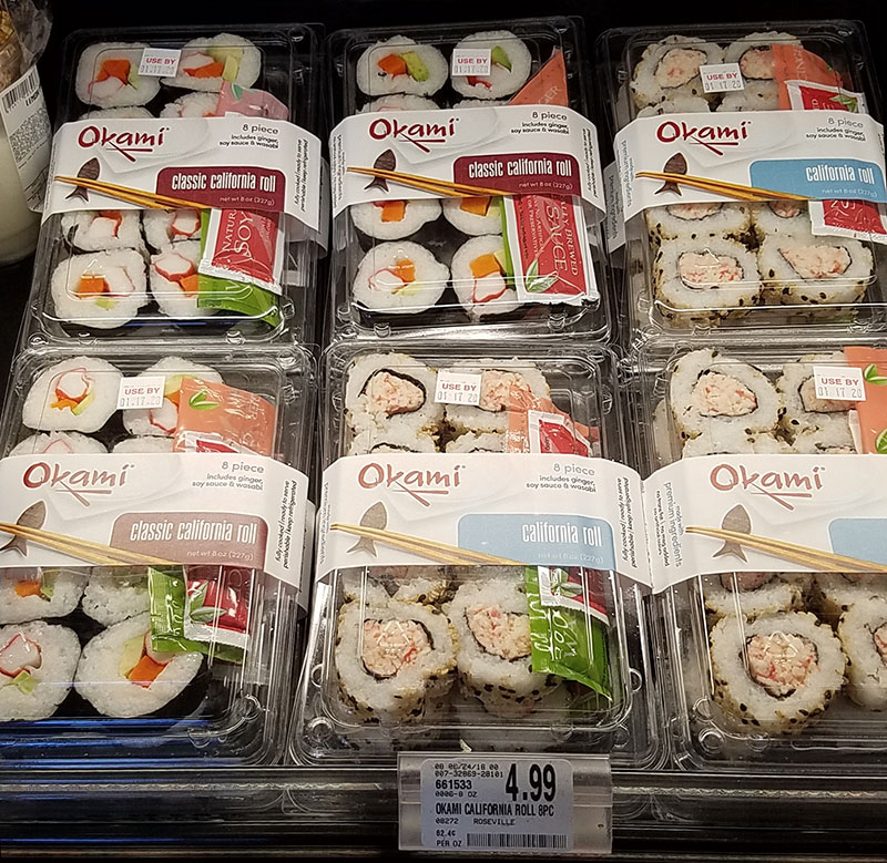 As sushi gains acceptance in the U.S. and other Western nations, it has become available in many supermarkets and even gas station convenience marts. The quality varies greatly depending on who produced the product, as well as the ingredients. Save Mart, a local bargain supermarket, carries Okami brand prepackaged sushi. I have tried this brand twice in the past and was disappointed by the flavor and texture.