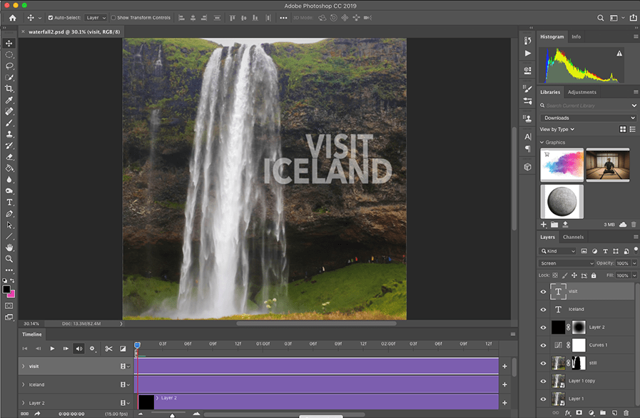 Creating my first cinemagraphs required going outside my comfort zone to work with video in Photoshop. The first two were relatively straight forward, but the Hawaii postcard cinemagraph was more challenging because there was no easy way to make the video loop. Instead, I used time remapping to make the video bounce back and forth in time. While not very realistic, this “ping-pong” type motion is used in many animated GIFs that are shared on social media.